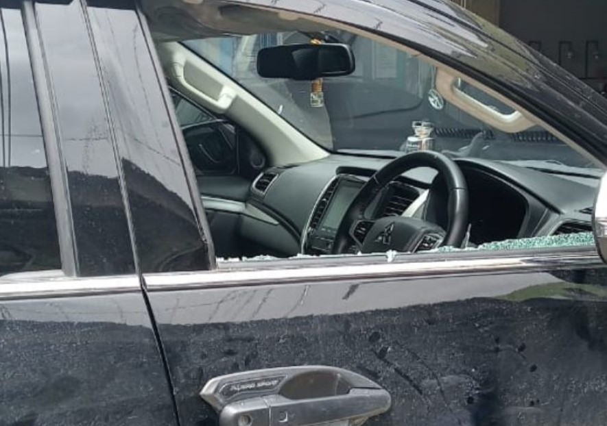 Dua orang tak dikenal tiba-tiba mendatangi mobilnya menggunakan sepeda motor. Tanpa ba-bi-bu, mereka memecahkan kaca kanan depan, mengambil tas berisi uang, dan langsung melarikan diri ke arah barat. Peristiwa ini terekam dalam video yang kemudian beredar di media sosial, memperlihatkan korban menunjukkan pecahan kaca mobilnya.