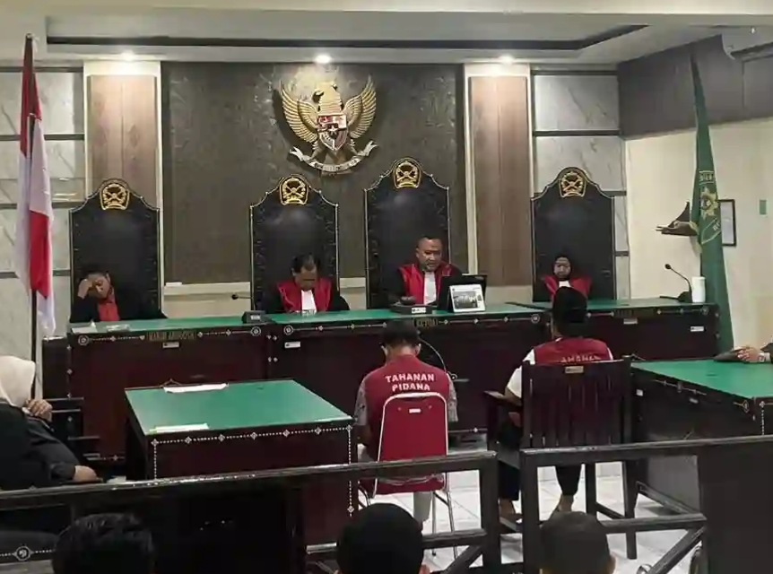 Ketua Majelis Hakim Glorious Anggundoro menegaskan unsur Pasal 368 ayat (1) KUHP terbukti dipenuhi oleh para terdakwa. “Menjatuhkan hukuman tiga tahun penjara kepada terdakwa,” ucapnya.