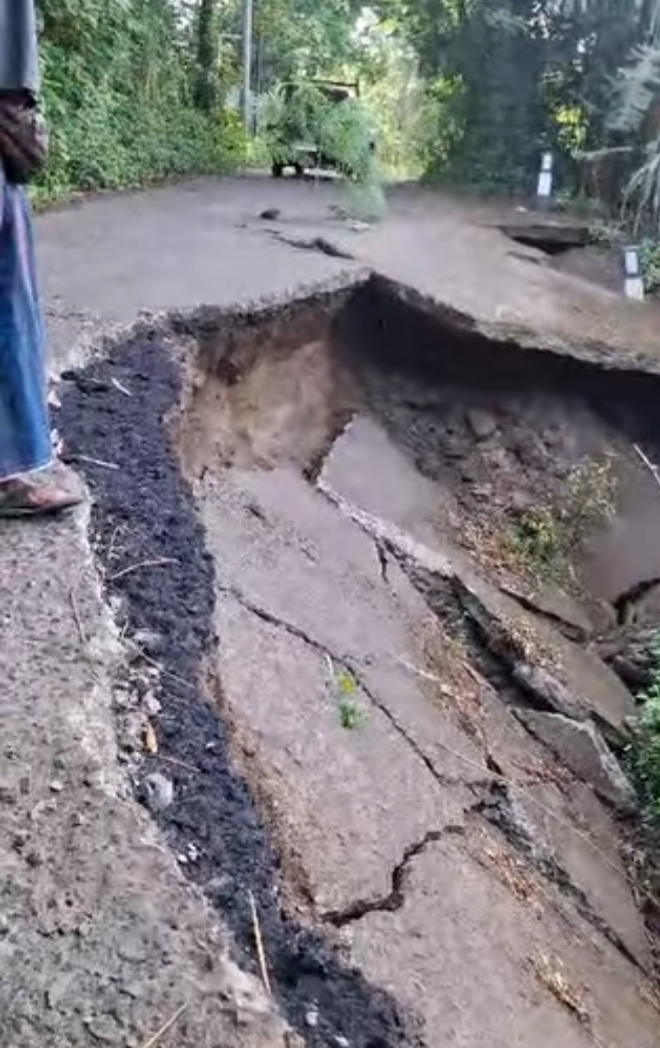 Ruas jalan strategis yang selama ini menjadi urat nadi mobilitas antar-desa itu ambles setelah hujan deras mengguyur wilayah tersebut pada Sabtu (7/2) malam. Badan jalan ambrol ke jurang sedalam sekitar tiga meter, menyebabkan kendaraan roda empat tidak bisa melintas, sementara sepeda motor harus bergantian melewati sisa badan jalan yang menyempit.